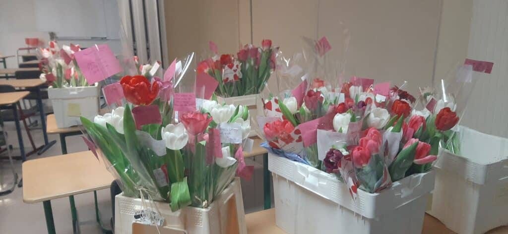 Cette journée du 13 février était organisée par le bureau des élèves du lycée. Distribution de fleurs et partage étaient mis à l’honneur !